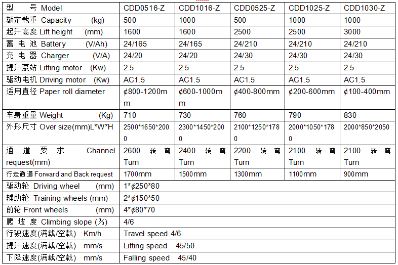 With America Curtis electric controller, continuously variable speed drive, regenerative braking and emergency reverse function to protect the operator’s safety;